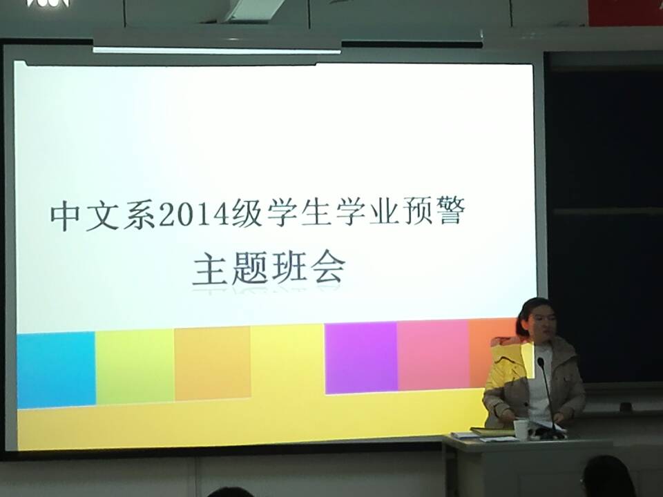 3月6日,2014级辅导员祁燕苹在东侨校区求真楼C区201教室举行汉语言文学系2014级员工学业预警主题班会。