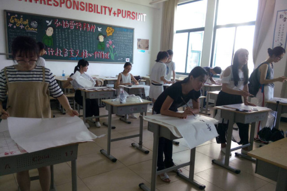 为了提高员工的道德修养、文明素质和专业技能,促进学校良好学风的形成,立足培养员工对书法的兴趣,全面挖掘员工艺术潜质,丰富校园文化生活。2016年5月28日下午2点30分,由英语系主办的三笔字大赛分别在AA201和AA203教室举办。此次活动以传承传统文化为宗旨。