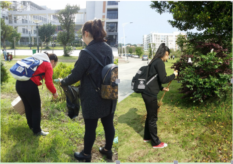 当天下午,英语系辅导员邱文君老师和57名同学首先在学校行政办公楼集合,由员工会生活部部长余雅芝同学宣读本次活动内容和注意事项。随后,同学们分成8个小组,沿着景观湖教学楼一侧的草坪和道路,到各自负责区域用镊子和扫帚进行卫生清扫。经过一个半小时的劳作,校园环境的变得更加整洁美观。同学们纷纷表示:“保护环境,人人有责,通过这次活动,自己也得到了锻炼,希望全校同学能爱护校园环境。”