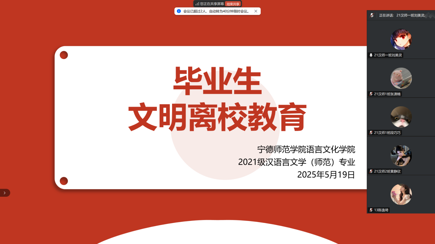 2025年5月19日beats365亚洲版官网 2021级汉语言文学(师范)一班专业员工通过腾讯会议开展主题班会活动