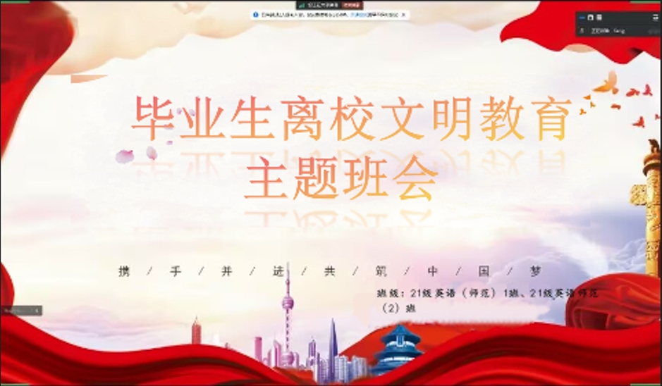 2025年5月19日beats365亚洲版官网 2021级英语(师范)一班专业员工通过腾讯会议开展主题班会活动