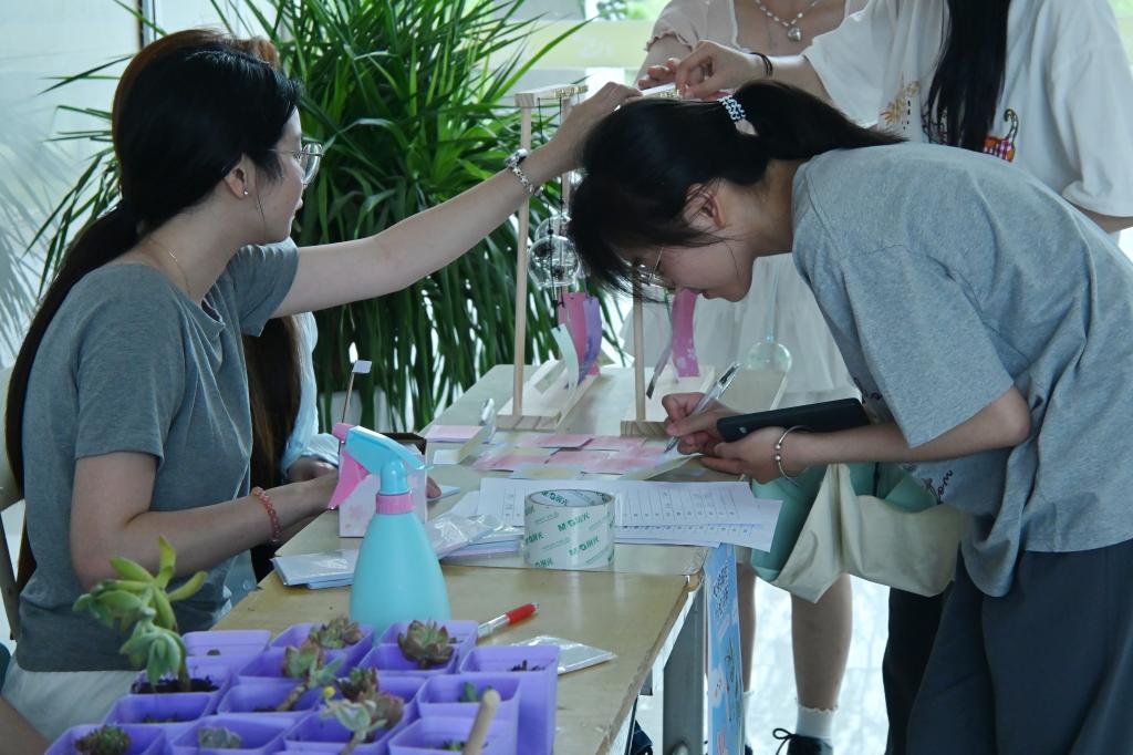 本次活动设置两大特色环节。在“解忧杂货铺”中,员工可匿名写下自己的烦恼,系于风铃挂至“烦恼风铃墙”。在“植物领养计划”中,员工选择风铃留言鼓励他人后即可领养绿植。