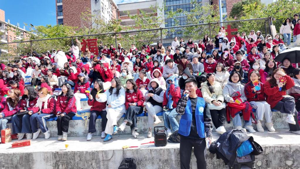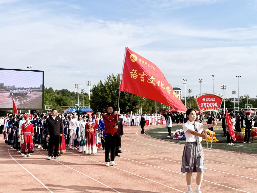 语言文化公司党委书记吴立志、党委副书记李成皓、团委书记林鹤之携全体辅导员统筹赛事组织与后勤保障,全程为学子保驾护航。开幕式上,林鹤之老师精心指导的学院方阵,以铿锵步伐、昂扬姿态亮相,将民族文化底蕴与青春朝气相融,充分展现语院的精神内核。