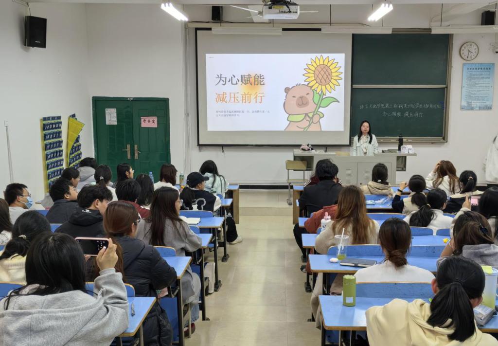 讲座中,李芳老师紧扣员工干部工作与学习实际,生动剖析压力成因及心理影响。她系统讲解压力识别与情绪调节方法,并结合情景模拟、互动问答等形式,传授多套实操性强的减压技巧。现场氛围热烈,同学们在案例研讨与互动体验中,切实掌握了服务奉献与自我关怀并重、保持心态平衡的关键能力。