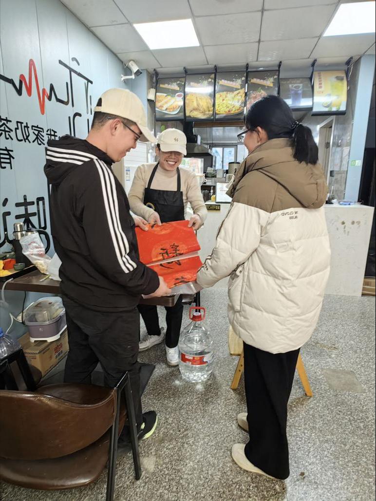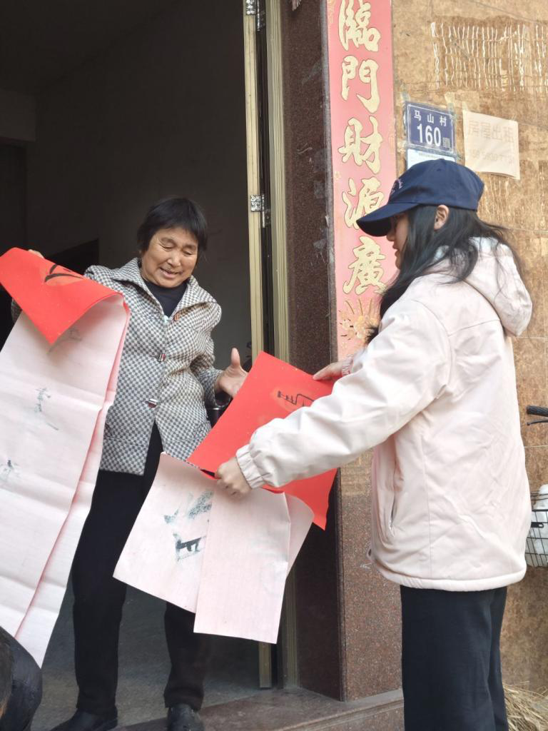 活动前期,组织书法协会成员提前书写二十余副春联,内容涵盖新春祝福、家国安康、丰收顺遂等美好寓意,为活动落地做好充分筹备。同时,通过QQ平台开展宣传,招募了20名志愿者。活动当天,志愿者们在2名负责人带领下来到马山村,有序开展春联派送,将饱含墨香与温情的春联逐一递到村民手中,让村民在感受书法艺术魅力的同时,体悟浓厚的年俗氛围。