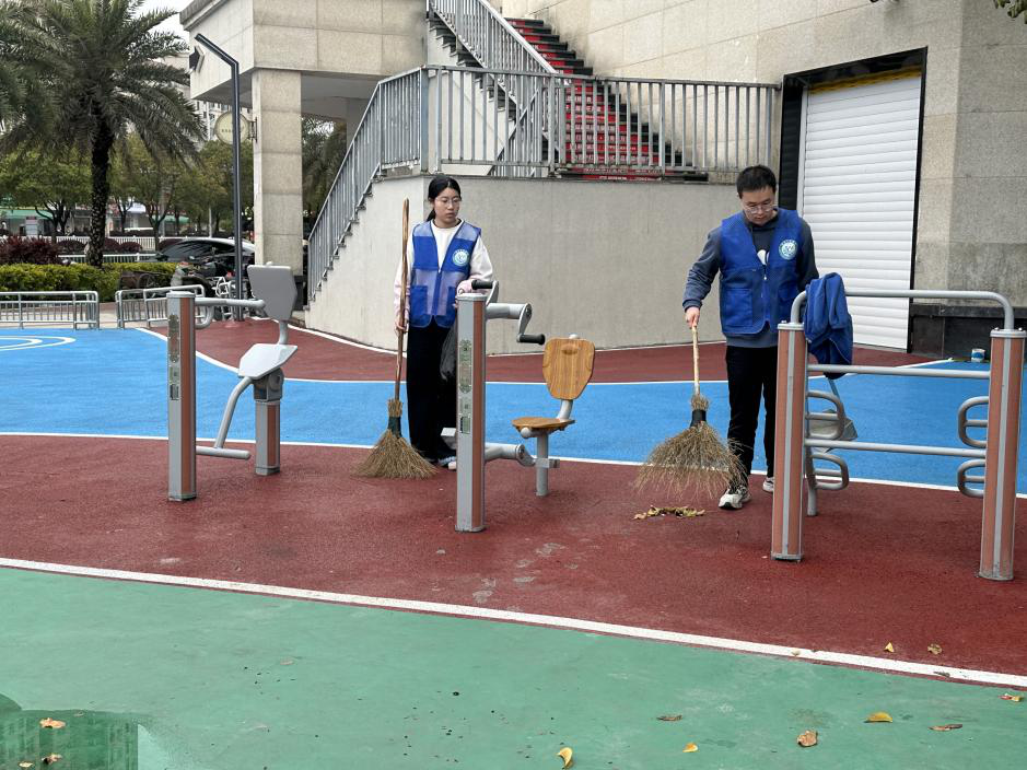 当日,志愿者们满怀热情抵达亿利社区,迅速分组投入清扫工作。大家手持扫帚、垃圾夹等工具,分工协作、干劲十足,对社区道路地面、花坛角落等区域进行全面清理,认真捡拾隐藏在草丛中的烟头、塑料垃圾,细致清扫路面的落叶与杂物,不放过任何一处卫生死角。志愿者们以认真负责的态度投入劳动,用实际行动诠释着青年的责任与担当。